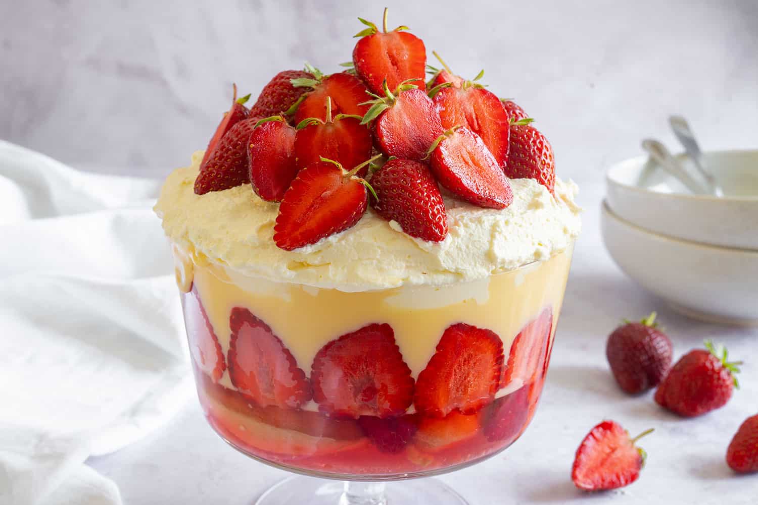 Layers of indulgence come together in this irresistible twist on a black forest trifle favourite. A vibrant and fruity blackcurrant jelly base is layered with smooth, velvety custard and finished with a generous crown of whipped cream. Each spoonful offers a perfect harmony of sweetness, refreshing fruit notes, and a creamy finish - ideal for those who crave a nostalgic treat with a luxurious touch.